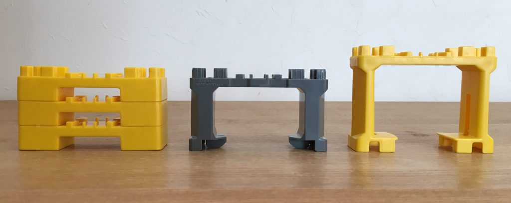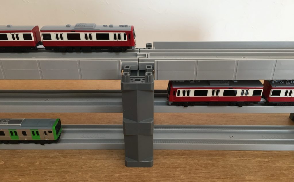 高さは、「ミニ橋脚」3つ分で、プラレールの「ブロック橋脚」より1段低くなっていて、アドバンスにちょうど良い高さになっています。