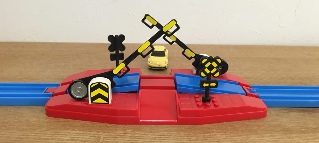 しかし、「トーマス」「ディズニー」「チャギントン」のようなリ車両を走行させるのであれば、「大きな踏切」ではリアルすぎるので、かわいらしい「ニュー踏切」の方が合います。