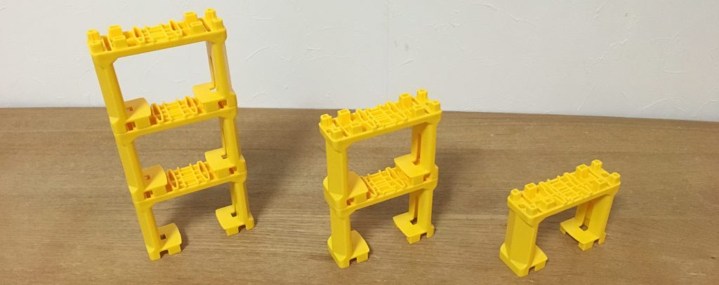 積み重ねると、下のレールが橋脚の足で抑えられるので、固定されるようになります。