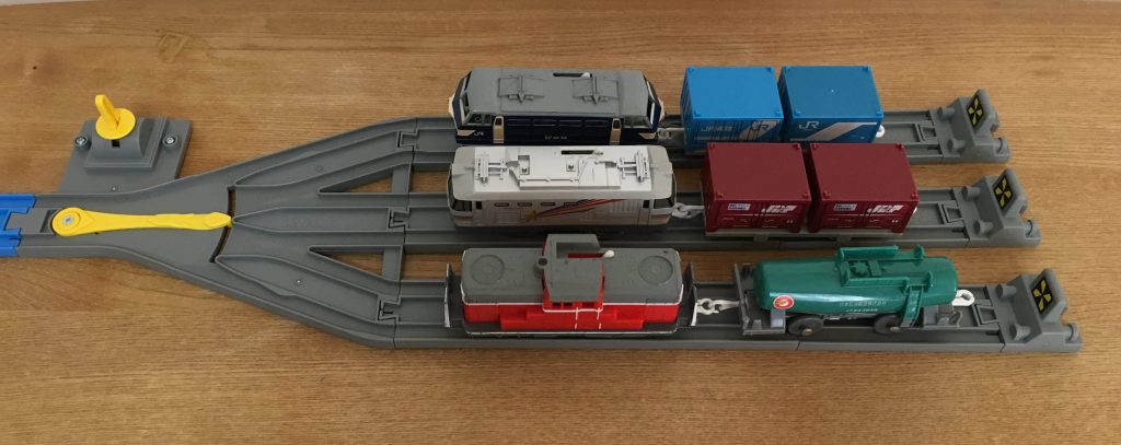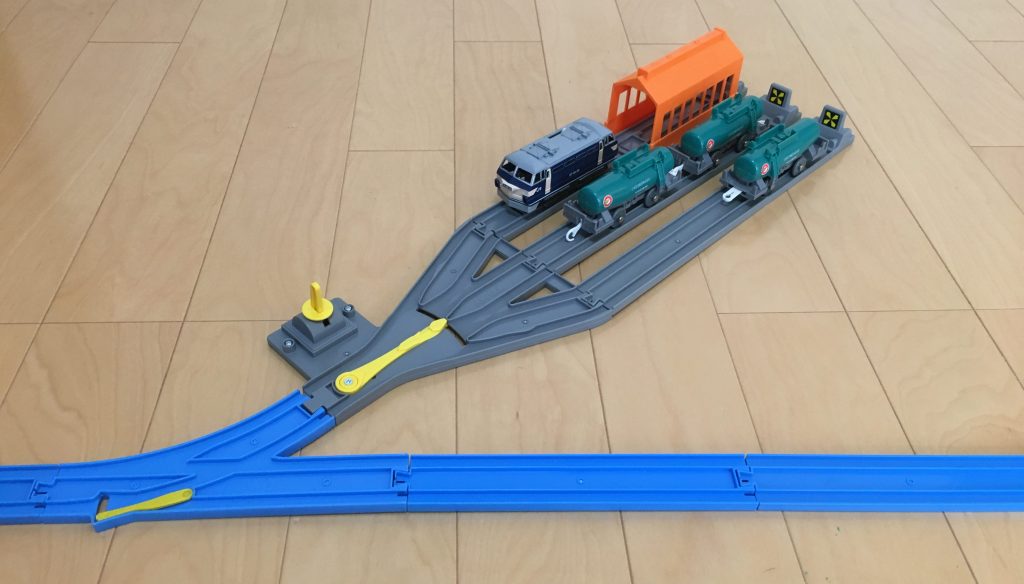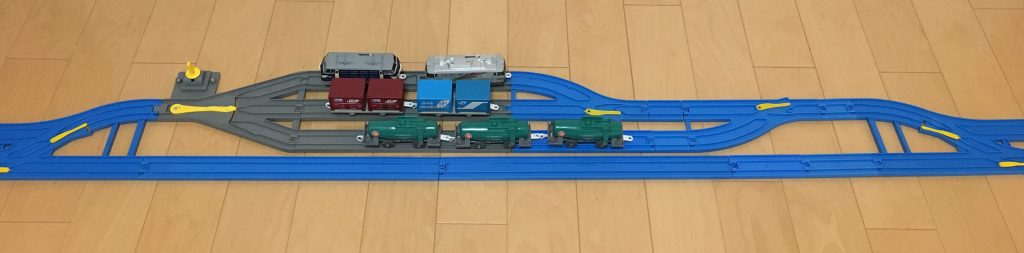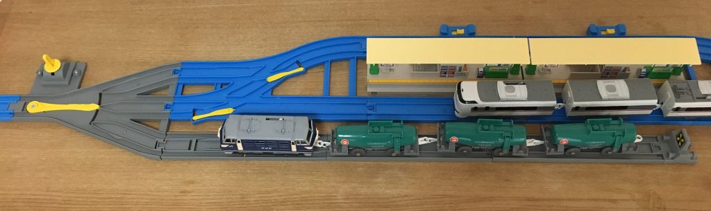 セットのレールでセットすると、2両編成が3本分が停車できます。