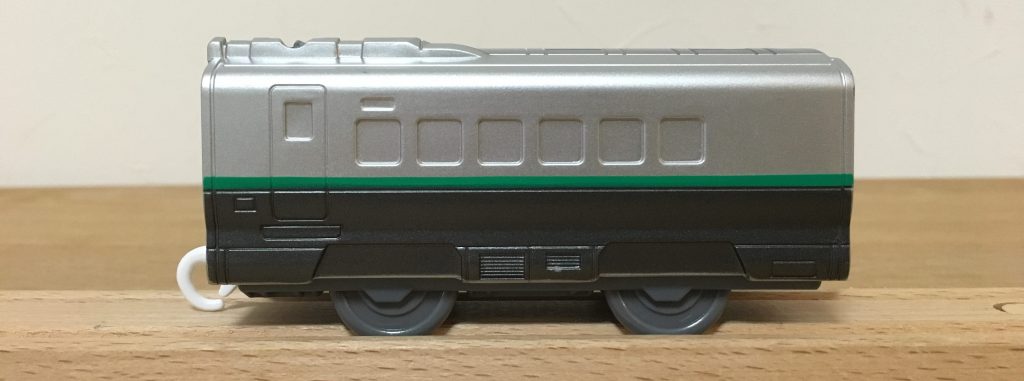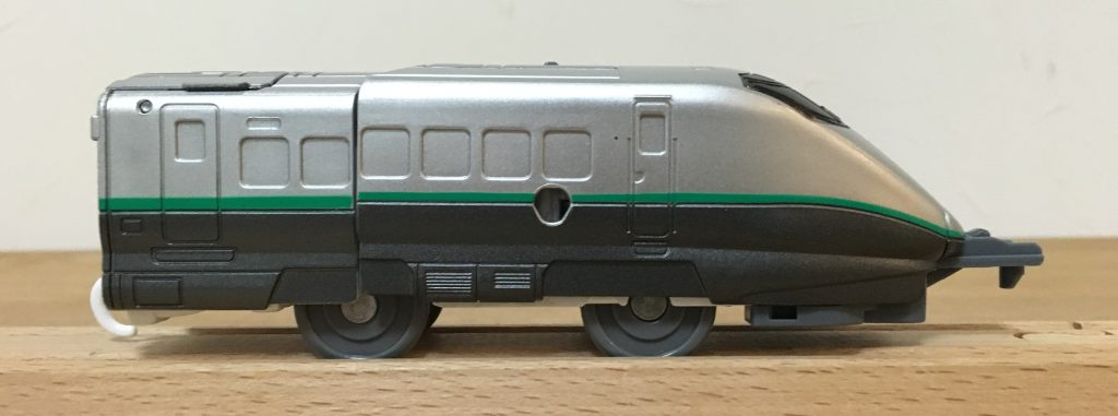 ドア、窓部分は、通常のプラレール商品であれば、黒塗り塗装か、窓をくりぬいてありますが、特に処理しておらず、新幹線モードだと締まりがない感じとなります。