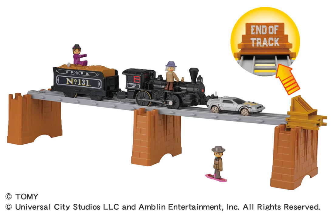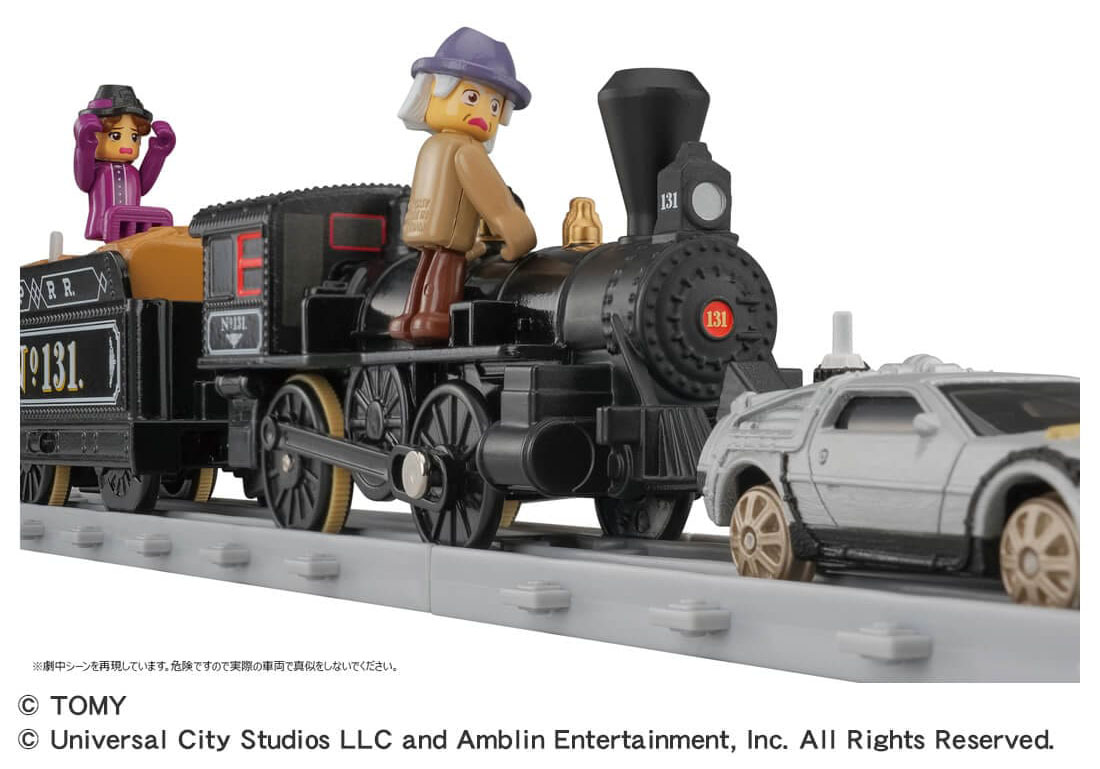| セット内容 | 蒸気機関車131号先頭車(1)、炭水車(動力車)(1)、レンガ橋脚(3)、車止め(1)、タイムマシン(トミカ)(1)、プラキッズ マーティ(1)、プラキッズ ドク(1)、プラキッズ クララ(1)、ホバーボード(1)、リアル直線レール(1)、ストップレール(リアルレール仕様)(1)、煙突(大)(1)、煙突(小)(1)、シール(1) |