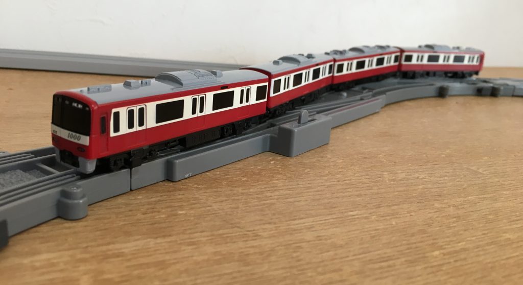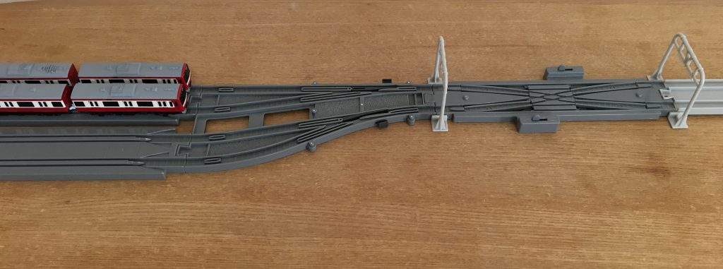 しかし、上の写真のように、曲線レールからこの「クロスポイントレール」に入線すると車両によっては、脱線しやすくなります。