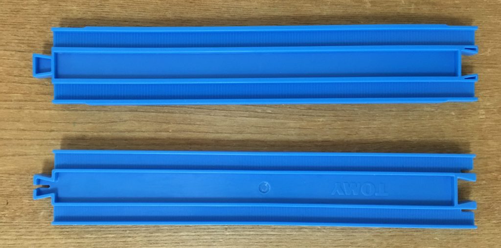 直線レールとの違い(上:坂直線レール、下:直線レール)