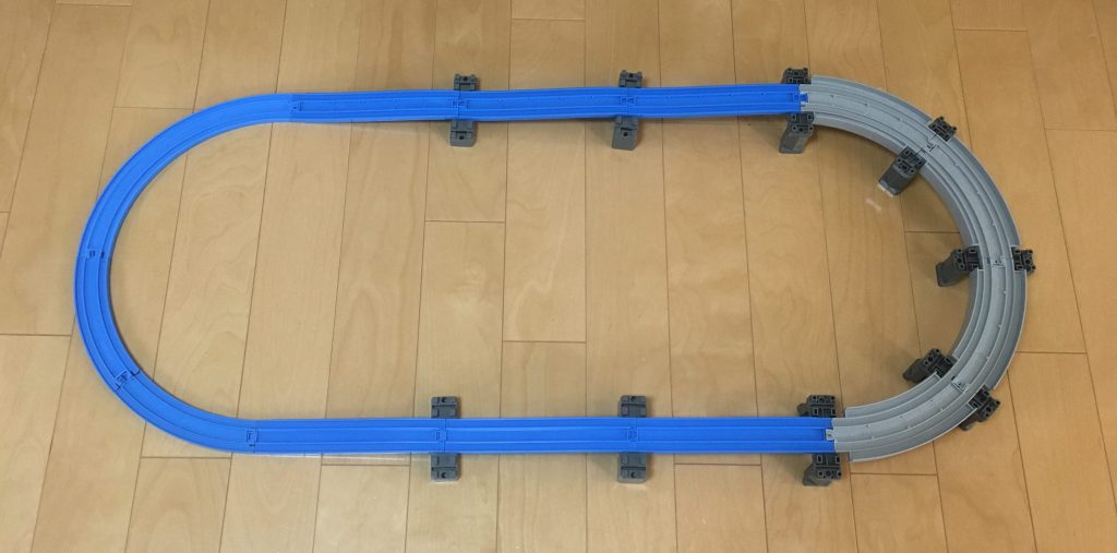 付属のレールは、アドバンス車両が登坂しやすいように、少し角度のついた直線レールとなっています。
