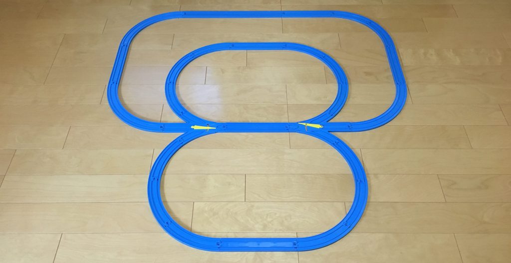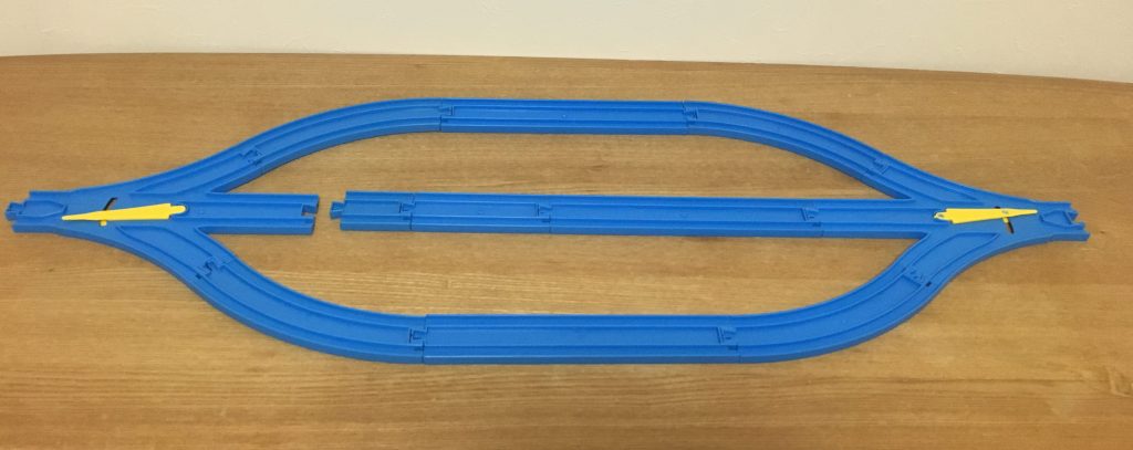 分岐の先を行き止まりにしないのであれば、3方向に分岐したレールを合流させなければならず、それなりに大きいレイアウトになってしまいます。