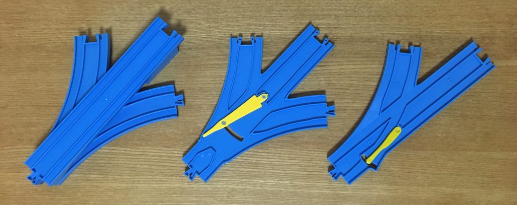 左から「曲線レールと直線レール」「3分岐ポイントレール」「ターンアウトレール」