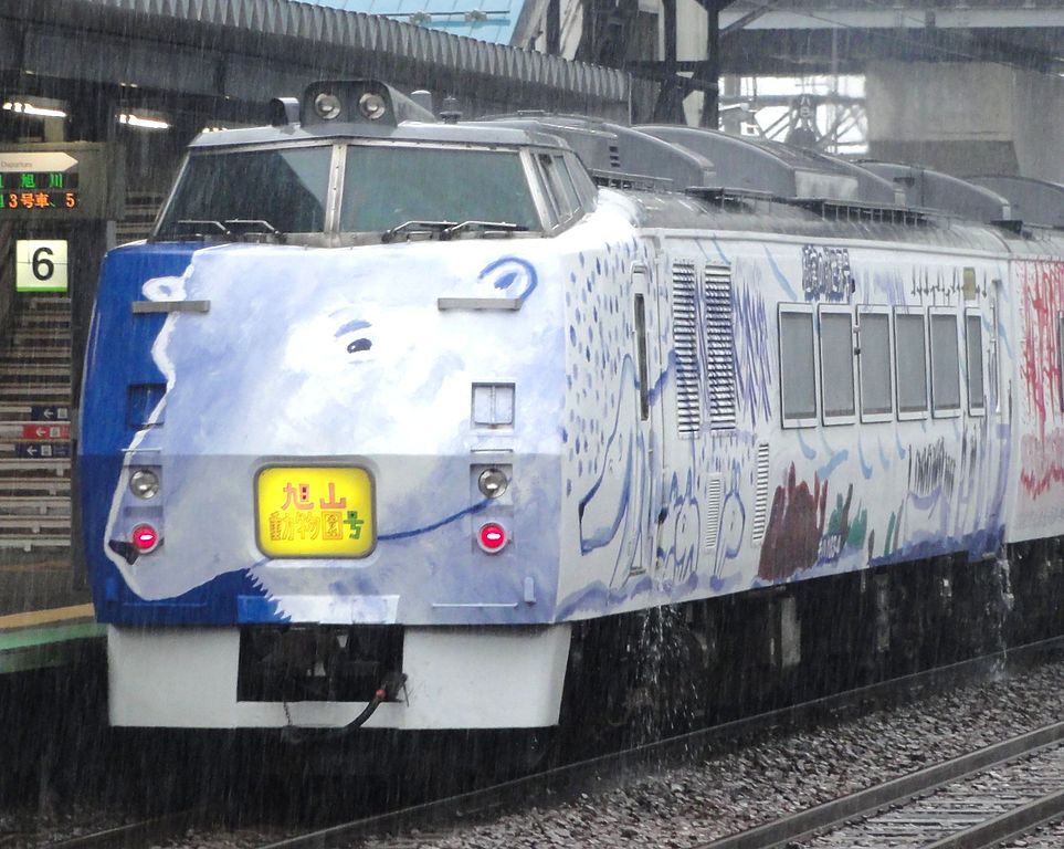 キハ183系気動車は、キハ80系の老朽化に伴い、国鉄が開発した耐寒耐雪機能のある北海道専用のディーゼル車両です。量産車は、1981年より営業運転を開始しました。そのキハ183系を旭山動物園への輸送のため、2007年に改造したのが「旭山動物園号」です。週末やゴールデンウィーク、夏休みなどを中心に臨時列車として、札幌駅と旭川駅間を運行しています。車両のデザインは、旭山動物園の元飼育係で絵本作家の「あべ弘士氏」が担当し、各車両には、動物の絵が描かれています。車内にも動物たちが描かれ、「フリスペース」「授乳室」「ハグハグチェア」「動物シート」などファミリーが楽しめる車両となっています。2013年には、リニューアルを行い、各車両ごとに「動物の棲み家」のテーマを設け、旭山動物園の動物たちが描かれています。