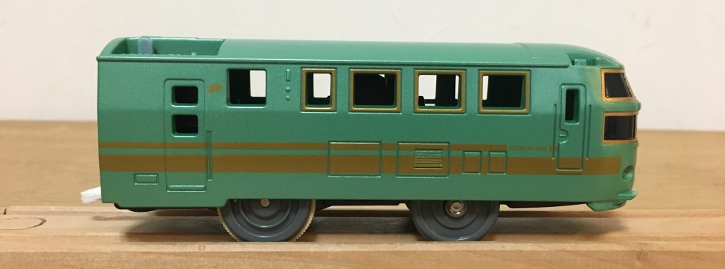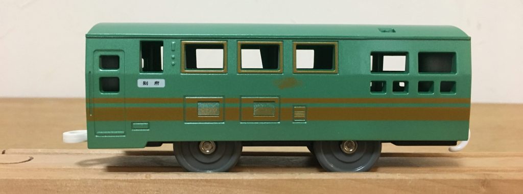 以前販売されていた「ゆふいんの森」は、もっと濃いグリーンでしたが、現在のバージョンは、実車にかなり近い塗装になっていて、「グリーンメタリック」がキレイです。