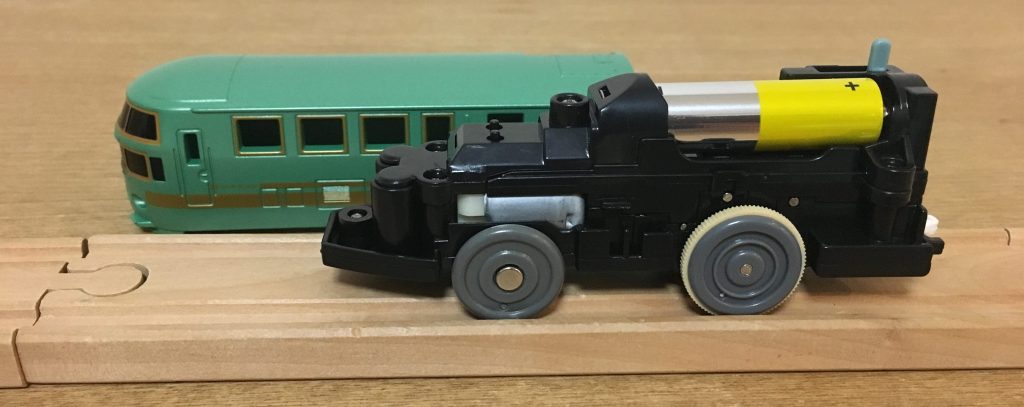 実車では4両編成ですが、この商品では「1号車+3号車+4号車」の3両編成です。